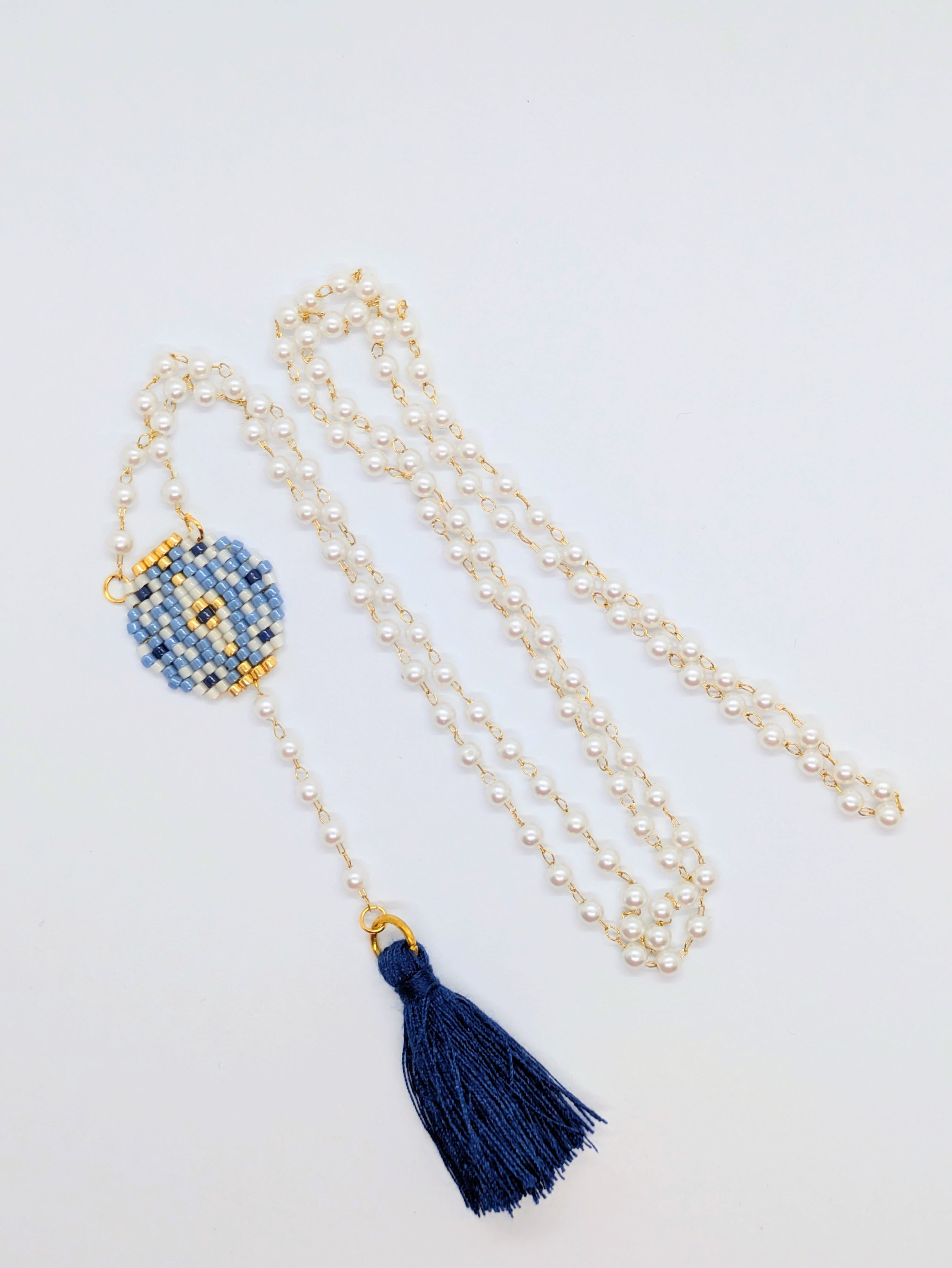 Each earring is handwoven bead by bead over several hours, creating a flowing silhouette finished with fine, elegant fringes. Mounted, they combine comfort with artisanal craftsmanship.